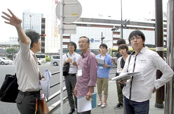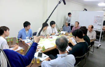 ワークショップは、商店街の危険個所等や避難経路等の町並点検を御幸町発展会、伝馬町発展会の2つのチームに分かれて行い、その結果をふまえ、ワークショップ会議を開催しました。