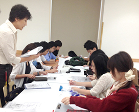 ワークショップには各発展会の役員、関係者11人と法学部1年生と2年生の11人が参加しました。ワークショップでは、「改築を重ねた建物が多い」「火災や落下物が心配」など、学生達は感想を述べ、来街者(お客様)の安全を図るために商店街が行うべきことについて活発な議論が行われました。