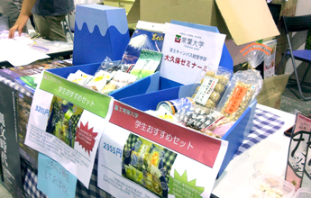 大久保ゼミは、富士商工会議所の富士ブランド事業を研究しています。5月には吉原商店街で富士ブランドのスイーツのモニター調査を実施しました。その時の結果を活用して富士市ならではのお土産になる「富士ブランドおすすめセット」の商品企画を行い、今回の「紙フェア」で展示を行い、地元企業と一緒に商品化を目指します。「紙フェア」では展示のほかに、お土産品に関する調査を実施しました。これまでの研究成果をまとめて11月に研究発表を行う予定です。