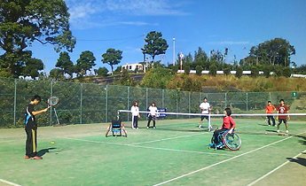 初めての車いすテニスで、ボールに追いつくことの難しさなどを体験し、参加者の皆さんと一緒に車いすテニスを楽しむことができました。