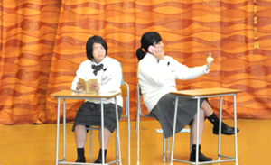 2人一組での対話形式で行うが特徴で、出場者は「ごみ分別問題」や「公共の場でのマナー」など日頃の問題意識を反映した英作文を、身振り手振りを交えながら数分間の寸劇に仕立てて発表しました。