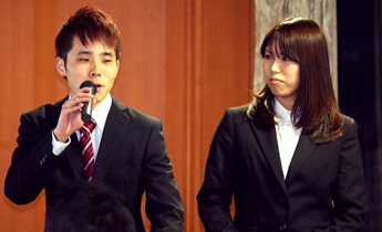 発表に立った澤本慎太郎さんは「普段のプレゼンテーションとは違い、張り詰めた緊張感や表情を変えない大人たちの姿を強く感じた。その他にも、自分たちのプレゼンテーションにメモを取ってくださったり、意見やアドバイスをしてくださったりした姿も印象的で、これからの活動にも前向きになった」と充実感に満ちた表情で話しました。