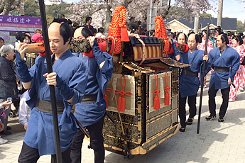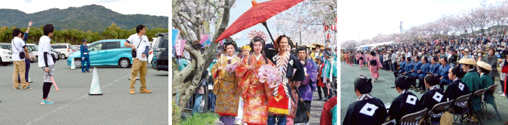 浜松市北区細江町で昭和27年より続く「姫様道中」が4月4日(土曜日)、5日(日曜日)に開催され、浜松キャンパスの2つのボランティアサークルが協力。姫様行列の駕籠奴に「障☆スポ」の学生が、駐車場スタッフとして「ThunderBirds」の学生が参加しました。