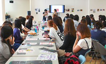 本学造形学部デジタル表現デザインコースが、国際交流の一環としてタイのシラパコーン大学装飾美術部視覚伝達デザイン学科の教員11名、学生4名をお招きし、2日間に渡り授業やワークショップを行いました。