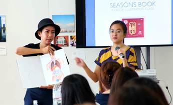6月23日(火曜日)には同コースの学生約40人が参加し、シラパコーン大学の学生が制作した動物や人物のイラスト、アニメーションなどの紹介や、イラストなどを貼り合わせて作品を作るコラージュワークショップを行いました。加藤之敏教授は「タイ独特の色合いや造形など特徴を感じてほしい」と話し、学生は一つ一つの作品を真剣に見入っていました。