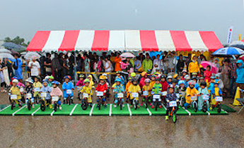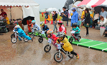 次代を担う「こどもたちのかけがえのない命」を社会全体で交通事故から守るために、交通ルールやマナーを習得してもらおうという目的に賛同した形で、ボランティアに参加。学生の担当はこどもたちがランバイクの体験やレースをするときの受付や補助で、あいにくの雨の中でしたが、大勢の子どもたちが参加し、大盛況でした。