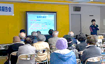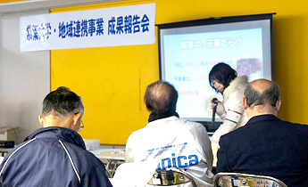 3月12日(土曜日)に社会環境学部の学生が、松崎町石部にある旧三浦小学校を会場に地域連携事業成果報告会を実施し、これまでに取り組んできた活動について、集まった地域住民や町関係者約40人の前で発表をしました。