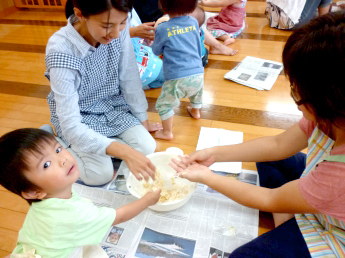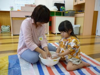子ども達は、手のひらでその変化も楽しみます。この触感は、子ども達の脳に素敵な刺激を運んで行きます。