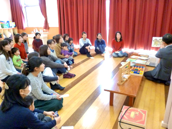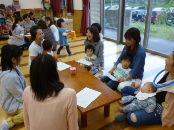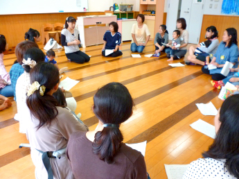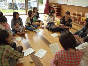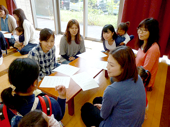 新しいお友達も増えて後期のポッケがスタートしました。お母さん達の関係をより深めていただくために、質問シートを使ってグループになり、おしゃべり形式で今日は進めていきます。