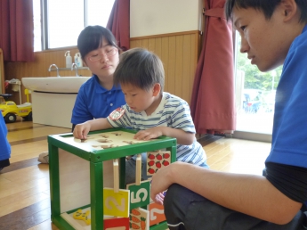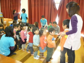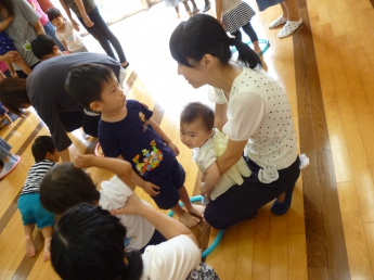 お名前を呼んでくれるのもお姉さん先生とお兄さん先生です。いつもと少し違う雰囲気の中、一番緊張しているのは、子どもたちより先生の方かな?