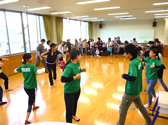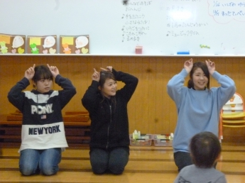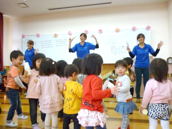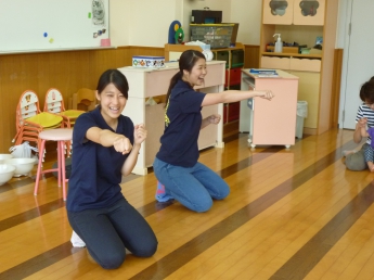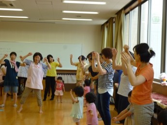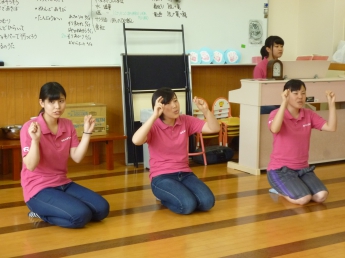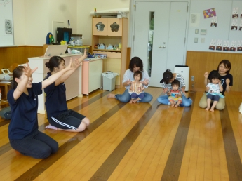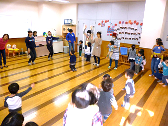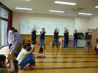 音楽に合わせて。お姉さん達と体を動かして楽しみましょう。