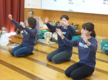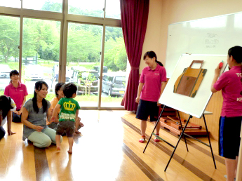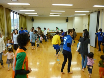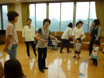 さあ、張り切ってチャレンジしましょう。ママも子ども達もバッチリ動ける服装で、全身を使って動きます