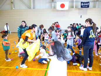 2月3日(土)冬のこどもむらが開催されました。寒い時期ですが、こども健康学科の学生達と子どもたちが、冬のキャンパスを使って思い切り遊びました。