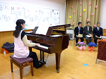 いつもとちょっと違う雰囲気に緊張気味の子も。でも、段々いつもの元気な笑顔の子どもたち。加藤先生の素敵なピアノ演奏で、式が始まりました。