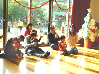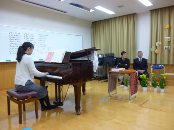 加藤先生のピアノに合わせて、たくさんクリスマスソングを歌います。