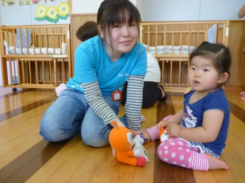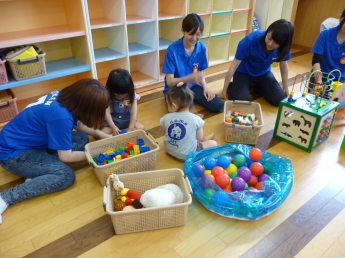 お話しの間、こども達は、お兄さんやお姉さんと楽しく遊んでました