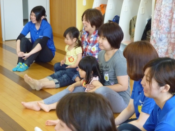 ママのおひざに戻って、ふれあい遊び