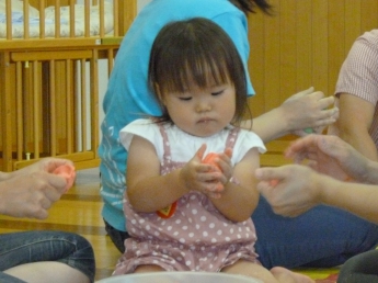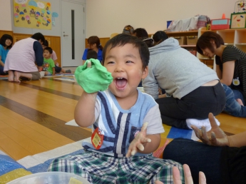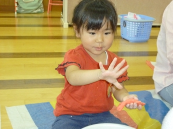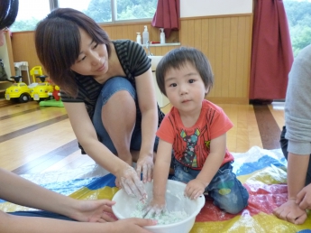 子ども達は、手のひらでその変化も楽しみます。この触感は、子ども達の脳に素敵な刺激を運んで行きます。