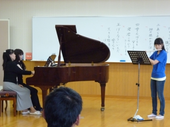 お昼休みは学内ミニミニコンサートがあり、音楽鑑賞しました