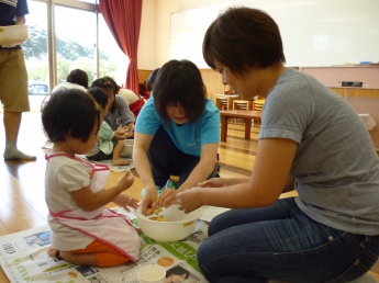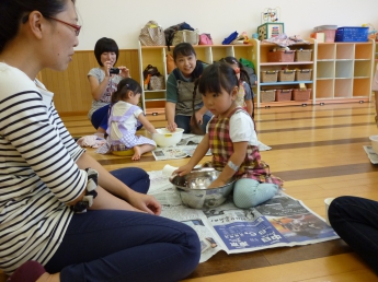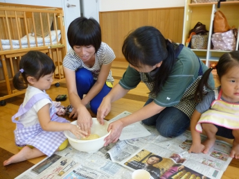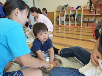 さらさら・ねっとり・もっちり・・、触感の変化を子ども達は楽しみます