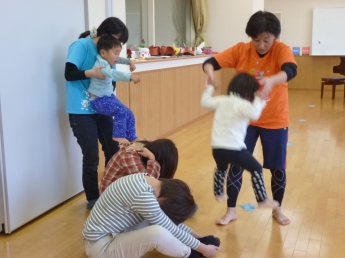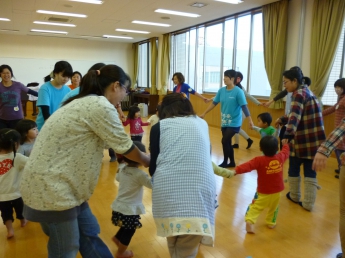 輪になって回るよ、大きなママの輪、小さな子ども達の輪
