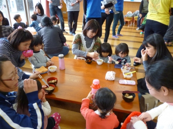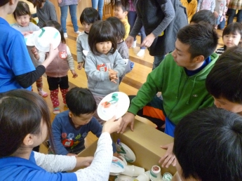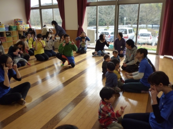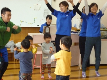 暖かいお部屋に戻って、お兄さんやお姉さんとふれあい遊び