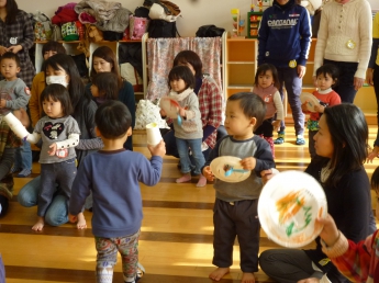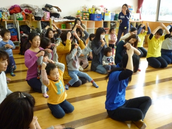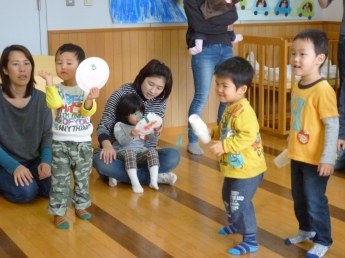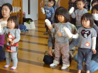 ”ミックスジュース”のダンスをしました。混ぜ混ぜするよ。グルグルグル~