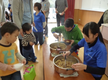 お疲れ様。お待ちかね”大根おでん”配りま~す