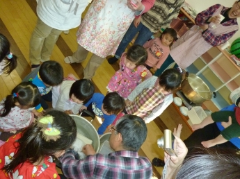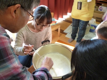 「おなかすいた~」「はやくたべたい~」の連呼の中、お豆腐完成!!