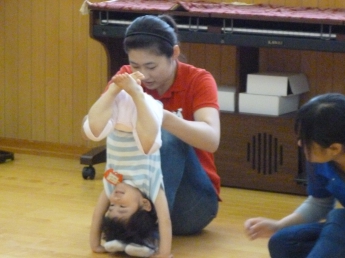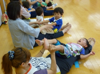 伸ばして~~。ママのやっているのを、子ども達はよく見ています