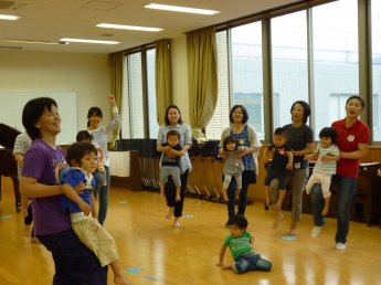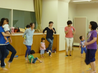 元気よく、ひざを高く上げて、腕を振って歩きます。今日はいっぱい動きました。ママ達、お疲れ様でした!!