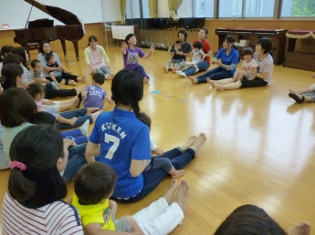 今日は、いつものポッケルームじゃなくもっと広いお部屋の音楽集団学習室。