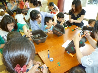 お絵描きだけでなく、色々な色のビニールテープもペタリと貼ったり。素敵なプランターに変身