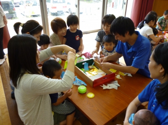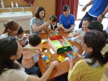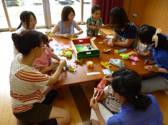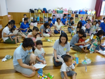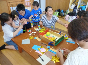 七夕の紙芝居と絵本を観て、七夕の由来をお勉強してから七夕飾りを作りました。