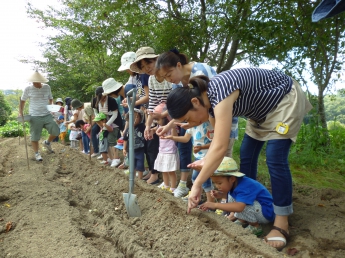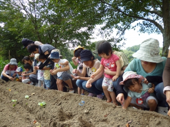 パンの発酵を待つ間、畑に大根の種をまきに行きました