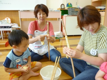 9月に入ってもなかなか天候不順です。今日は竹巻きパン作りなのでお天気が心配でしたが、晴れ!暑すぎくらいです。