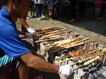 さあ、外に出て焼くよ。炭が熱い熱い!天気も良いので、真剣暑かったです!!