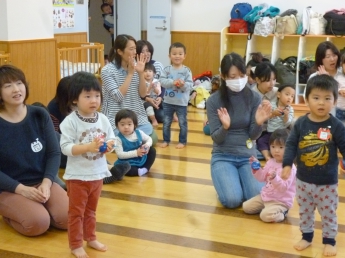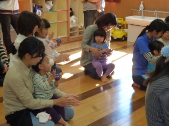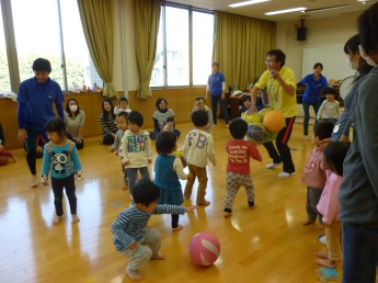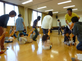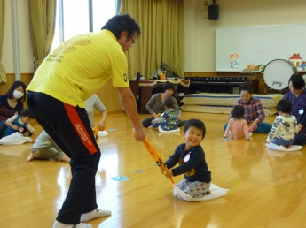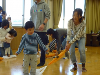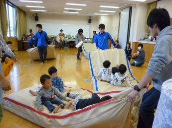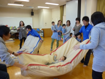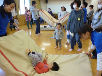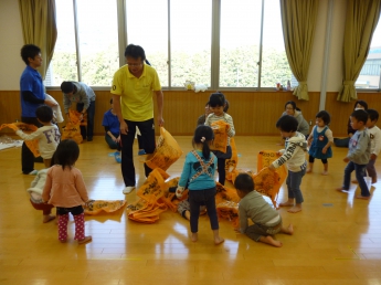 わっしょい、わっしょい、みんなが跳ぶよ。全身使って遊んだね。楽しかったね、お疲れ様