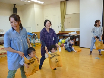 今度は袋を後ろに挟んでしっぽ取りゲーム