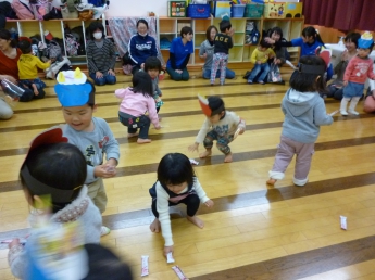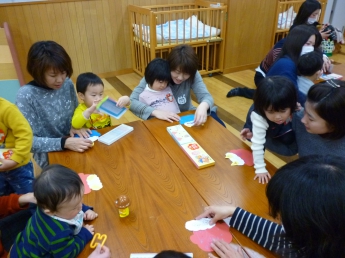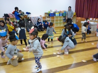 このあいだお正月と思ったら、もう節分が目の前。鬼のお面を作ります。豆まきもします。1月お誕生会もします。今日はやることいっぱい忙しい~。
