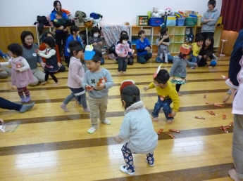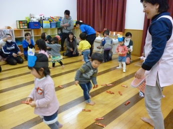 お待ちかね、豆まき(お菓子まき)開始~