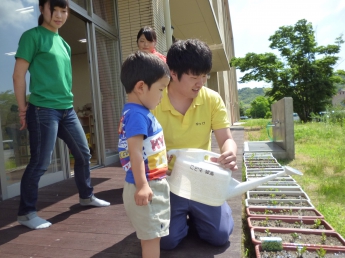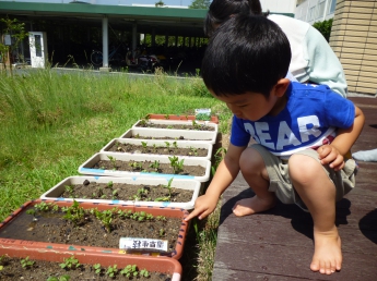 先週、蒔いた野菜の種が芽を出しました。たくさん芽が出ているのもあれば、ちょっとだけ顔を出している芽も。人間の子ども達と一緒で、早いのも遅いのもそれぞれ大切です。自分のプランターはどれだったかな?自分で思い思いに描いた素敵なプランター。