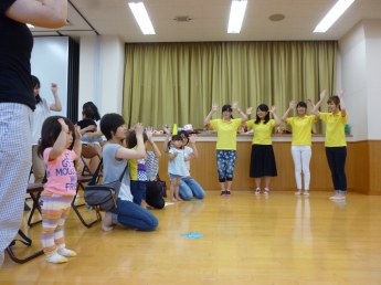 ”七夕”の歌を歌って、七夕の由来の紙芝居を観て、気分を盛り上げ制作に入ります。