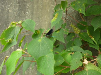 きれいな水辺に住む糸トンボ。黒い羽とエメラルドカラーのボディーがとても綺麗です