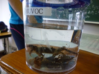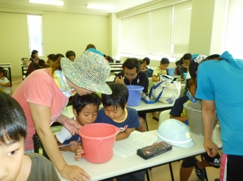 川から戻ったら、捕まえた生き物の確認をします