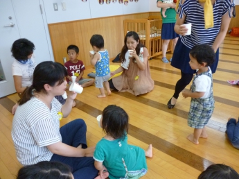 大型絵本の時間です。しばらくポッケはお休み。みんな良い夏をお過ごしください