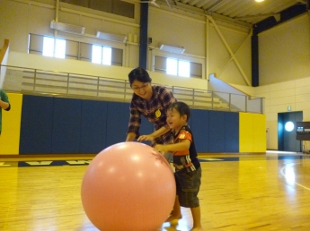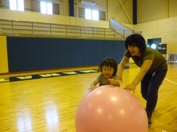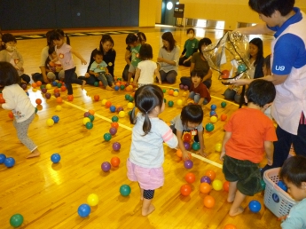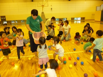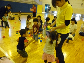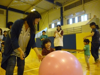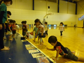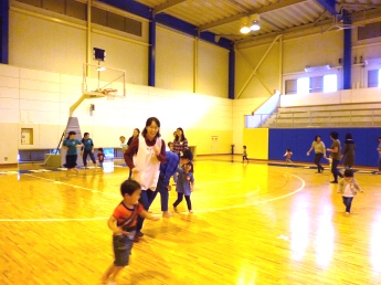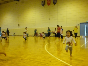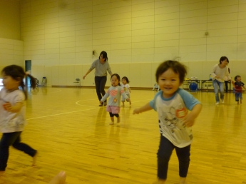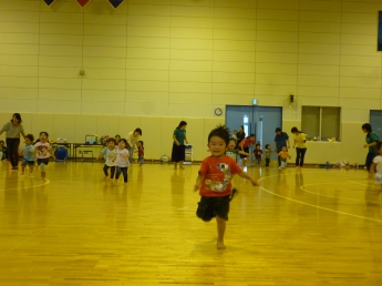 ポッケルームを飛び出して、広い体育館のトコハアリーナで「運動会ごっこ」を行いました。