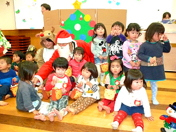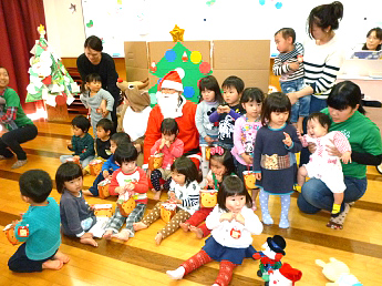 12月のお誕生会。うれしいお顔が並びます