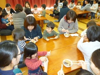 前日から仕込んだので、とろとろ味のしみたおでんです。ふ~ふ~、熱くておいしい。みんなで食べるとおいしね