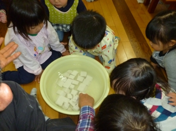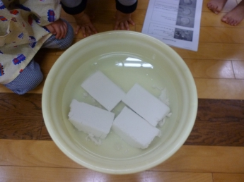 豆腐作りの時ちょっとうまく固まらなかったので、ゲーテ先生がみんなの為に、もう一度作っておいてくれました